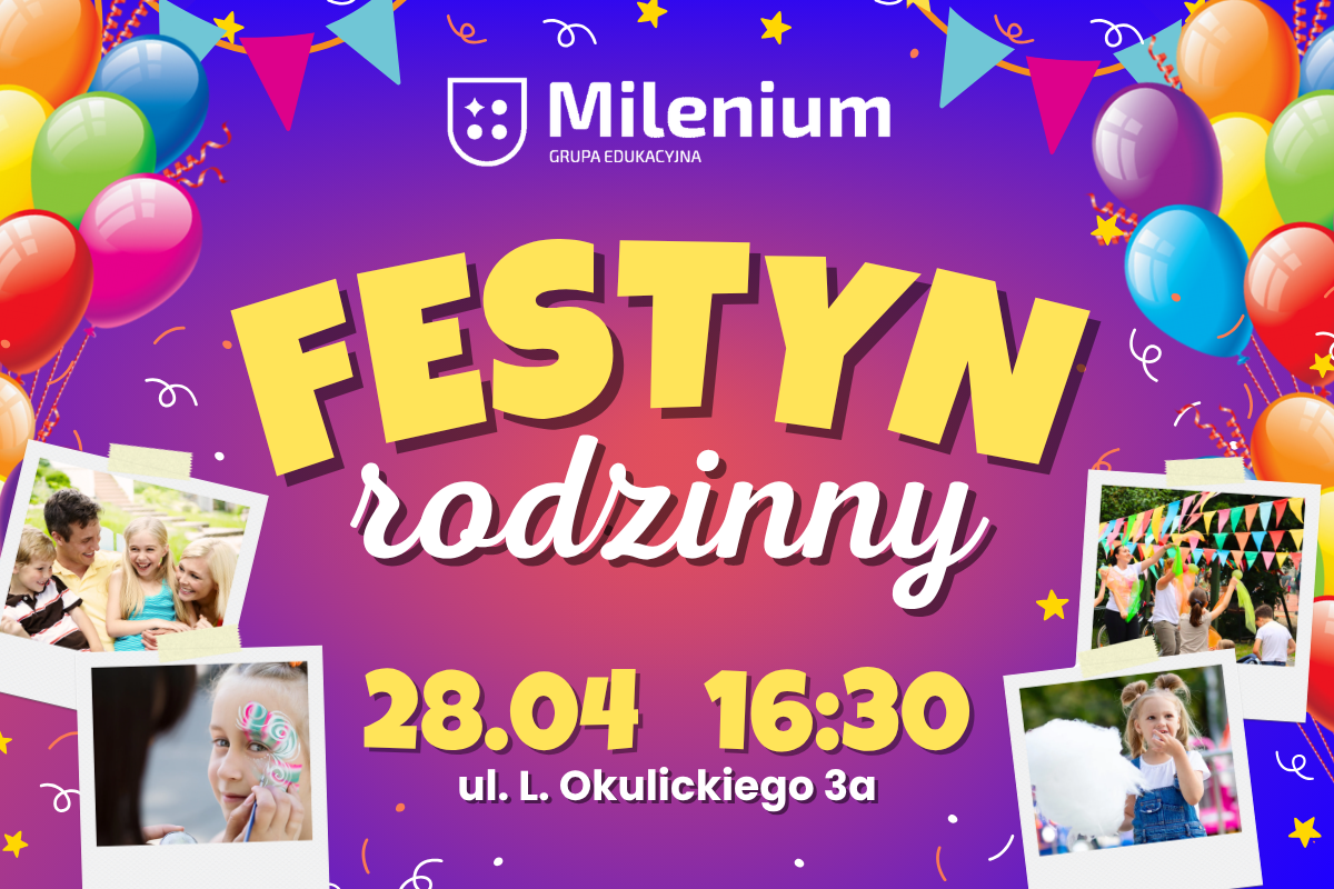 Już 28 maja od godz. 16:30 odbędzie się Festyn Rodzinny! 🎉 Zapraszamy dzieci w wieku szkolnym i przedszkolnym wraz z rodzinami na wyjątkowe popołudnie pełne radosnej atmosfery!