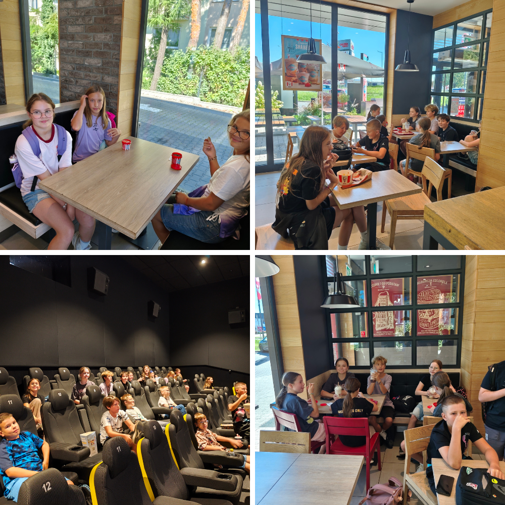 W pierwszym tygodniu szkoły klasa 5A wybrała się do kina na film „Szkoła magicznych zwierząt 3”. Film ten porusza tematy ważne dla dzieci, takie jak przyjaźń, szacunek do natury i presja mediów społecznościowych. Wyjście miało charakter integracyjny, po kinie udaliśmy się na lody, gdzie młodzież miała okazję porozmawiać o seansie i powspominać letnie przygody. Tym miłym akcentem pożegnaliśmy wakacje i z naładowanymi akumulatorami ruszamy do pracy!
