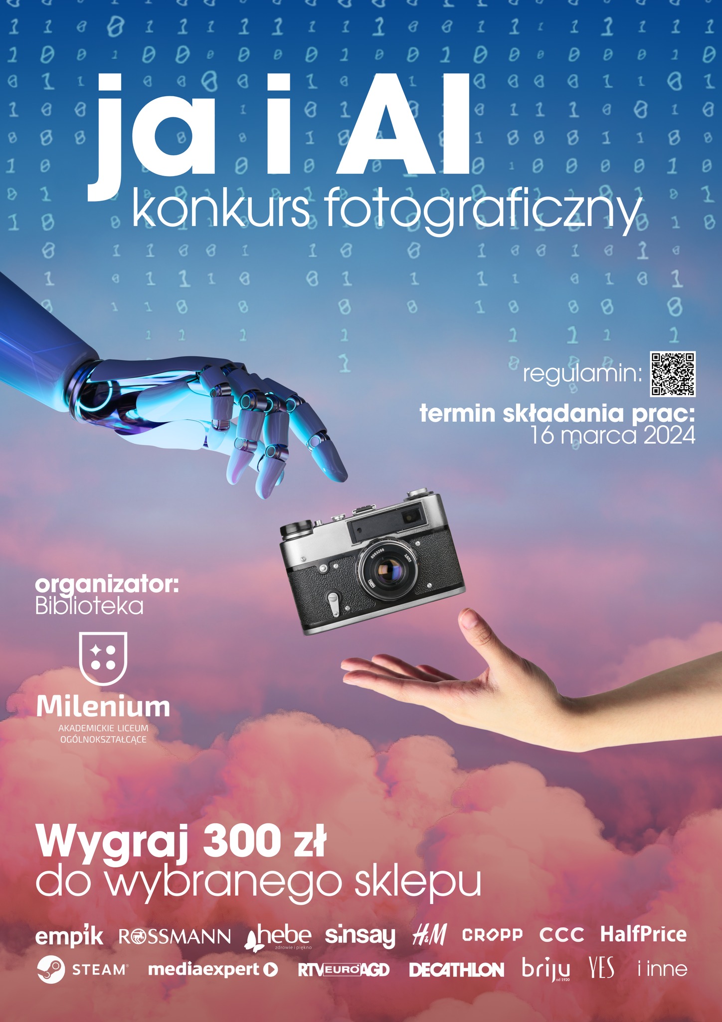 Biblioteka Akademickiego Liceum Ogólnokształcącego Milenium czwarty rok z rzędu zaprasza 7 i 8 klas szkół podstawowych do udziału w międzyszkolnym konkursie fotograficznym „Ja i AI”.
