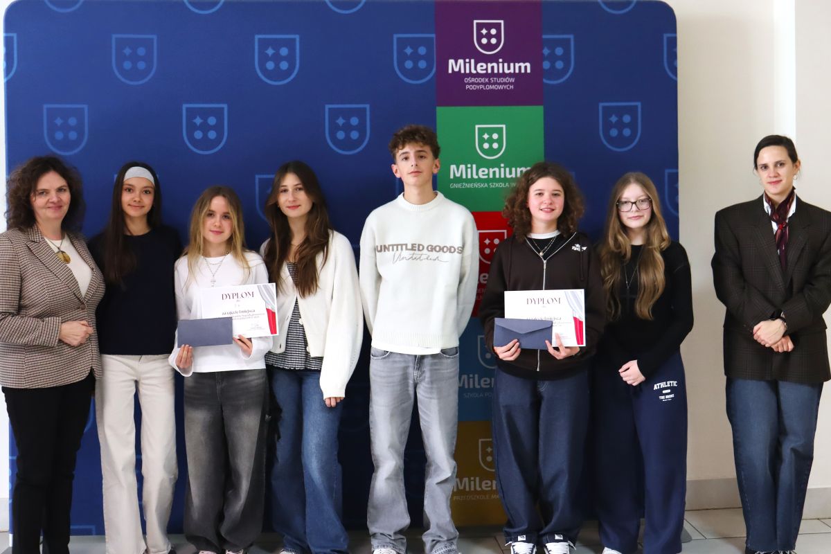 W miniony czwartek zostały wręczone nagrody (bon na pizzę o wartości 200 zł dla całej klasy) i pamiątkowe dyplomy klasom, które 4 listopada zwyciężyły w V Bieganym Dyktandzie Niepodległościowym.