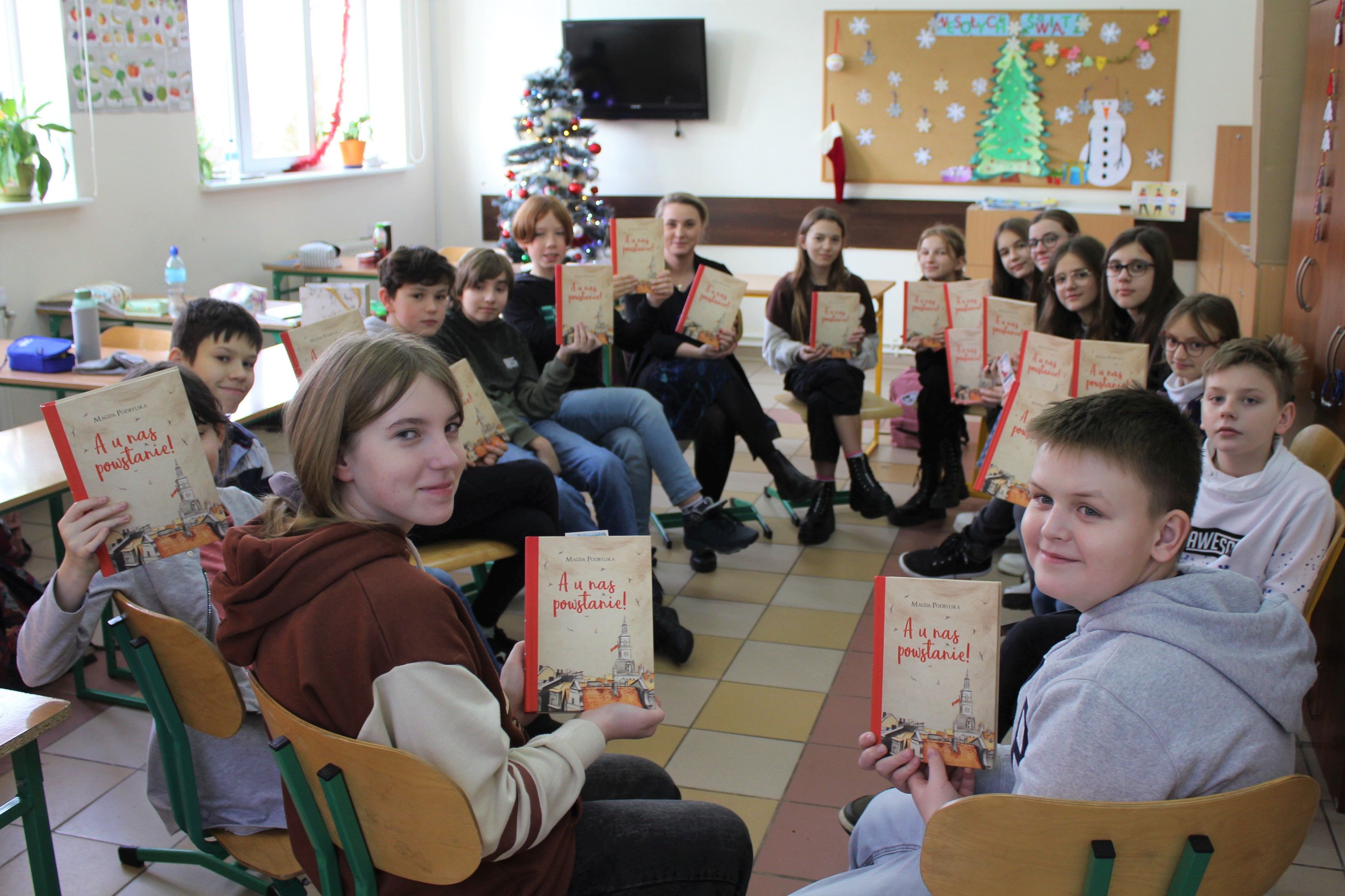 W tym tygodniu dzięki uprzejmości mamy jednego z naszych uczniów klasa VI a miała okazję poznać historię powstania, które umożliwiło przyłączenie terenów Wielkopolski do niepodległej Polski. Powstanie, które wybuchło w grudniu 1918 r. było jednym z niewielu zwycięskich polskich zrywów wolnościowych, a my mieliśmy okazję przyjrzeć się bliżej tej historii dzięki książce Magdy Podbylskiej „A u nas powstanie!”
