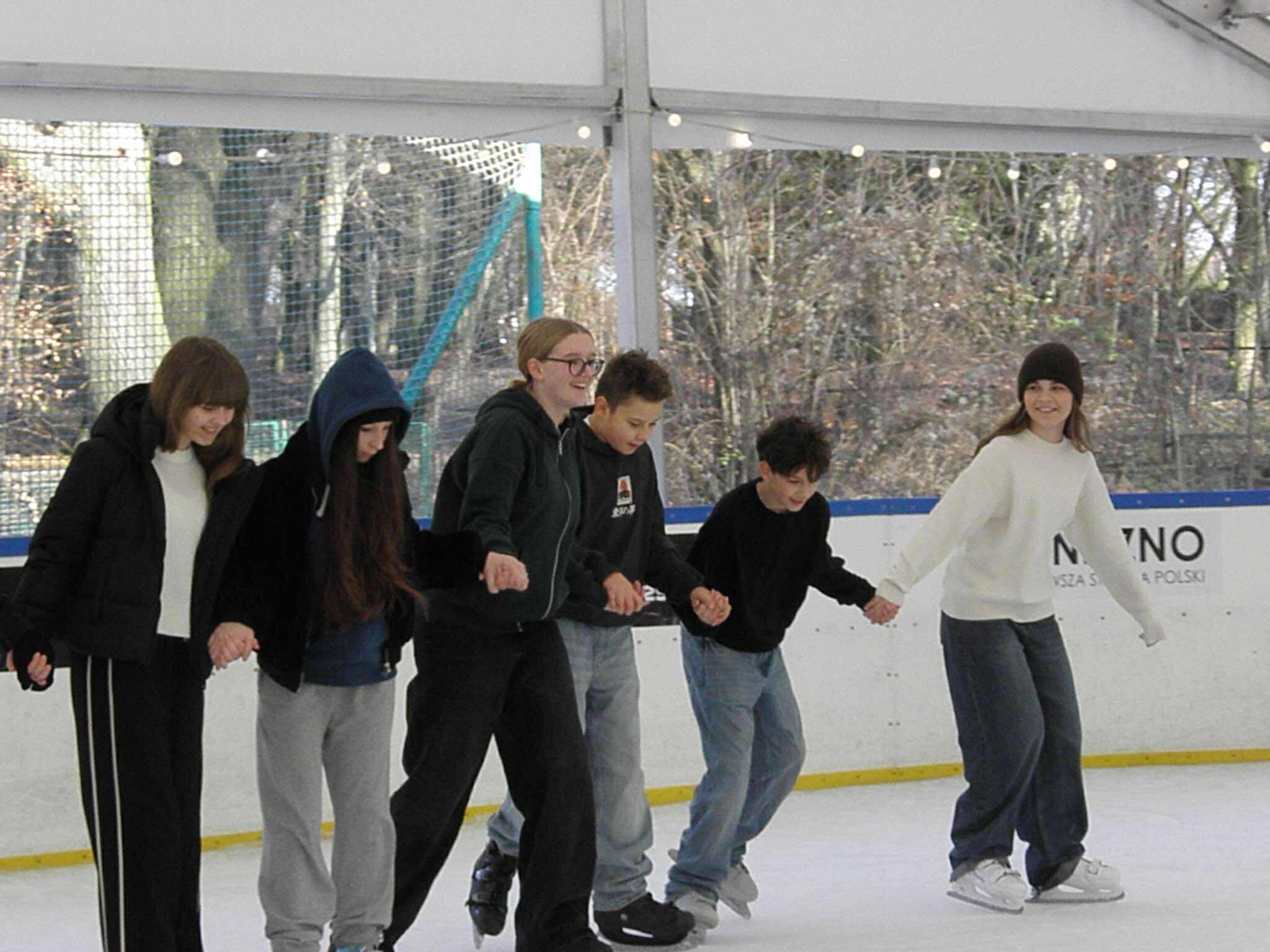 Dnia 11.12.2025 klasa 6b wybrała się na lodowisko. Uczniowie aktywnie doskonalili swoje umiejętności jazdy na łyżwach, wspierali się nawzajem i chętnie podejmowali kolejne próby wykonania trudniejszych elementów. Zajęcia przebiegły w radosnej, pełnej zaangażowania atmosferze.