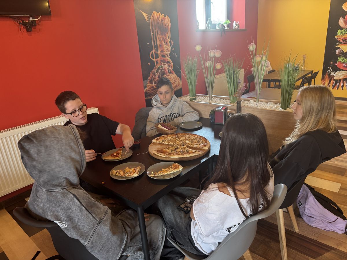 Dnia 01.10.2025 uczniowie klasy 6a wybrali się wspólnie na pizzę z okazji Dnia Chłopca. Była to doskonała okazja, aby spędzić czas razem, porozmawiać, pośmiać się i po prostu dobrze się bawić! Nie zabrakło pysznego jedzenia i wielu uśmiechów.