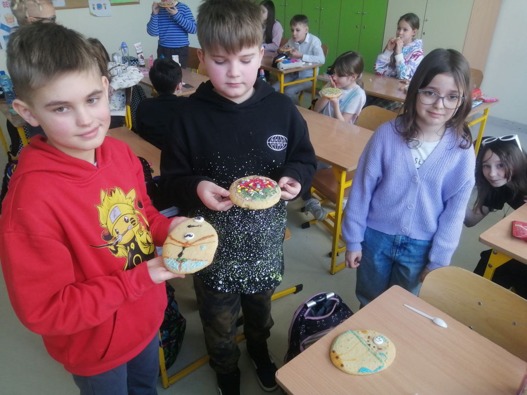Tuż przed Świętami Wielkanocnymi dzieci z klasy 3 b, oprócz wykonania dekoracji, wykonały także pyszne, niecodzienne pisanki. Tym razem były to jajka wykonane z ciasta. W połączeniu z polewami, posypkami i innymi dodatkami wyglądały absolutnie wyjątkowo!