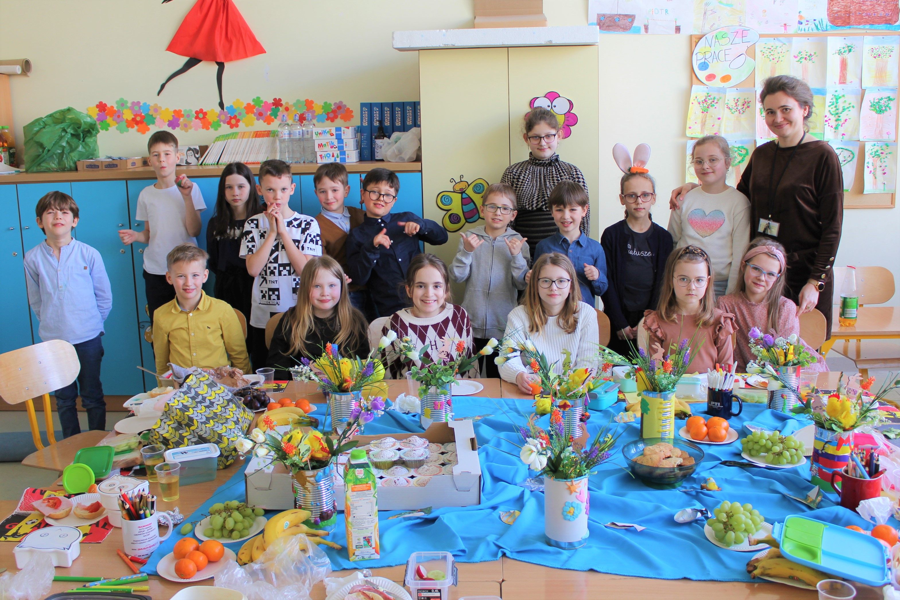 Dzisiaj nasza szkoła zaroiła się od zajączków, kurczaczków i kolorowych pisanek. To może oznaczać tylko jedno - ostatni dzień przed wielkanocną przerwą! Klasy tradycyjnie spotkały się podczas Śniadanek Wielkanocnych. Klasowe stoły w niczym nie ustępowały tym, które przygotowujemy w domu, były święconki, palmy, pisanki i oczywiście zajączek z prezentami!