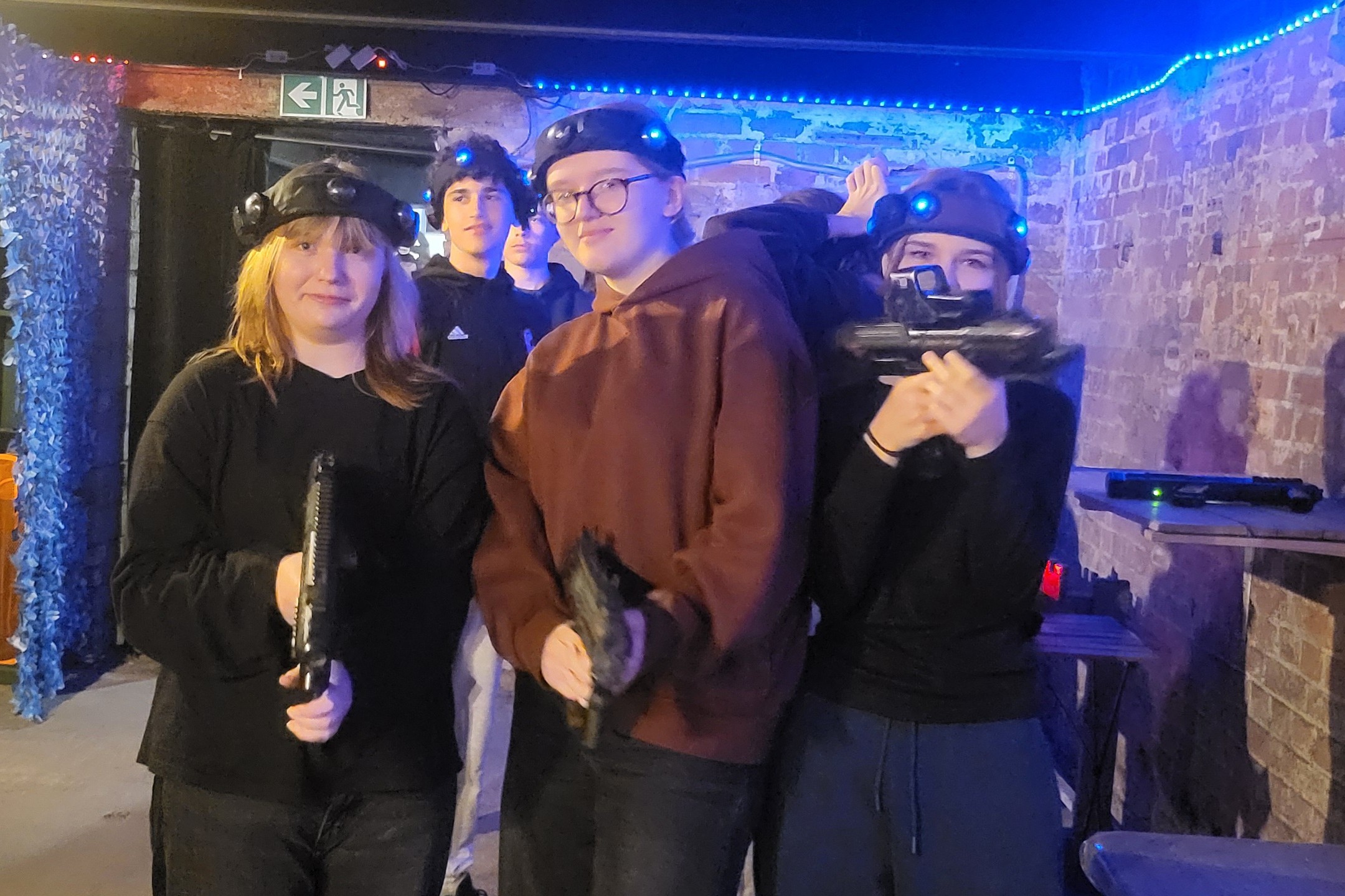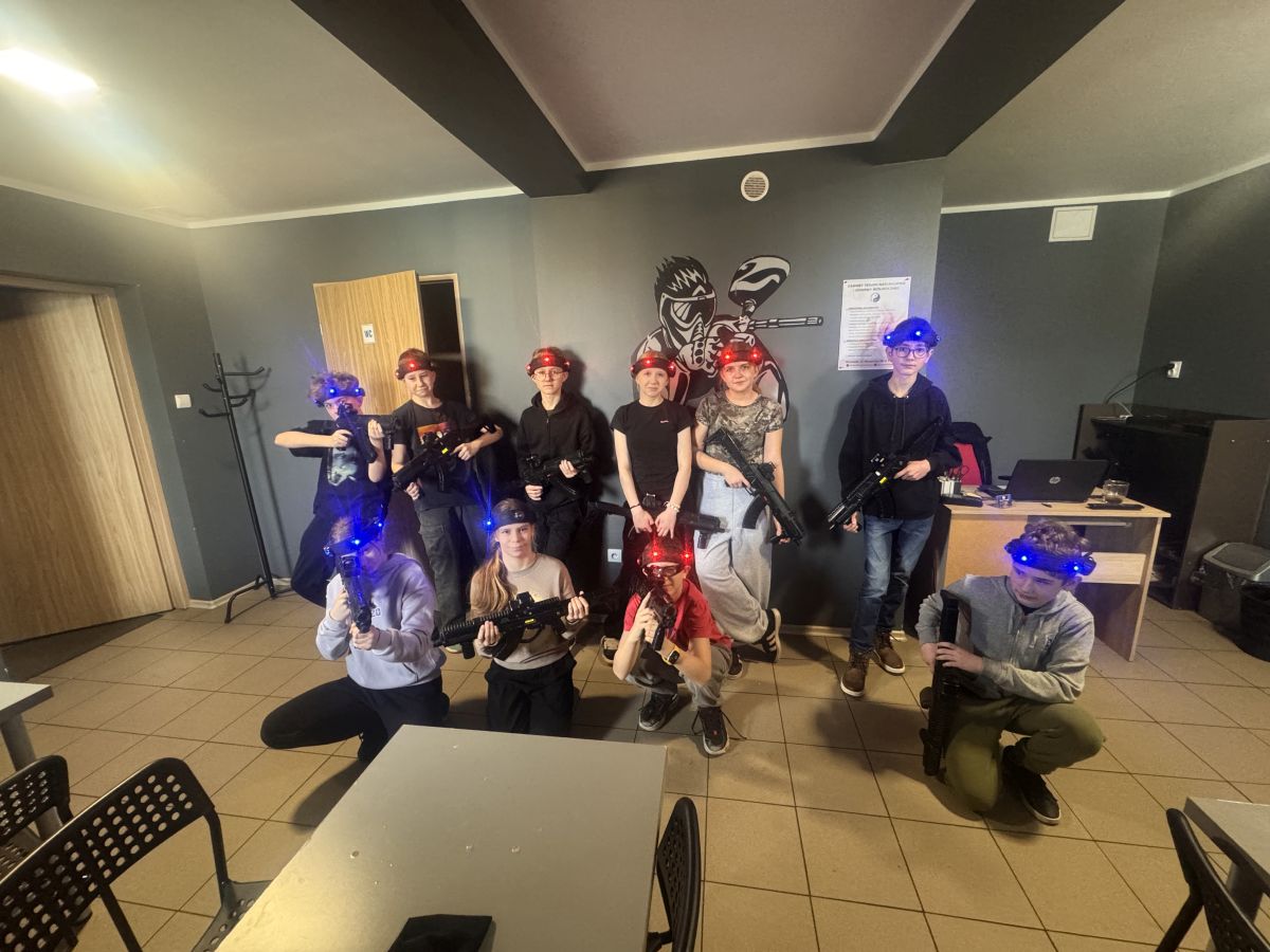 W czwartek 19.03.2026, świętując Dzień Kobiet, uczniowie klasy 8b razem z wychowawcą i kilkoma uczennicami z klasy 7a wybrali się na Paintball laserowy do Lasertarg Wielka Spluwa w Poznaniu.