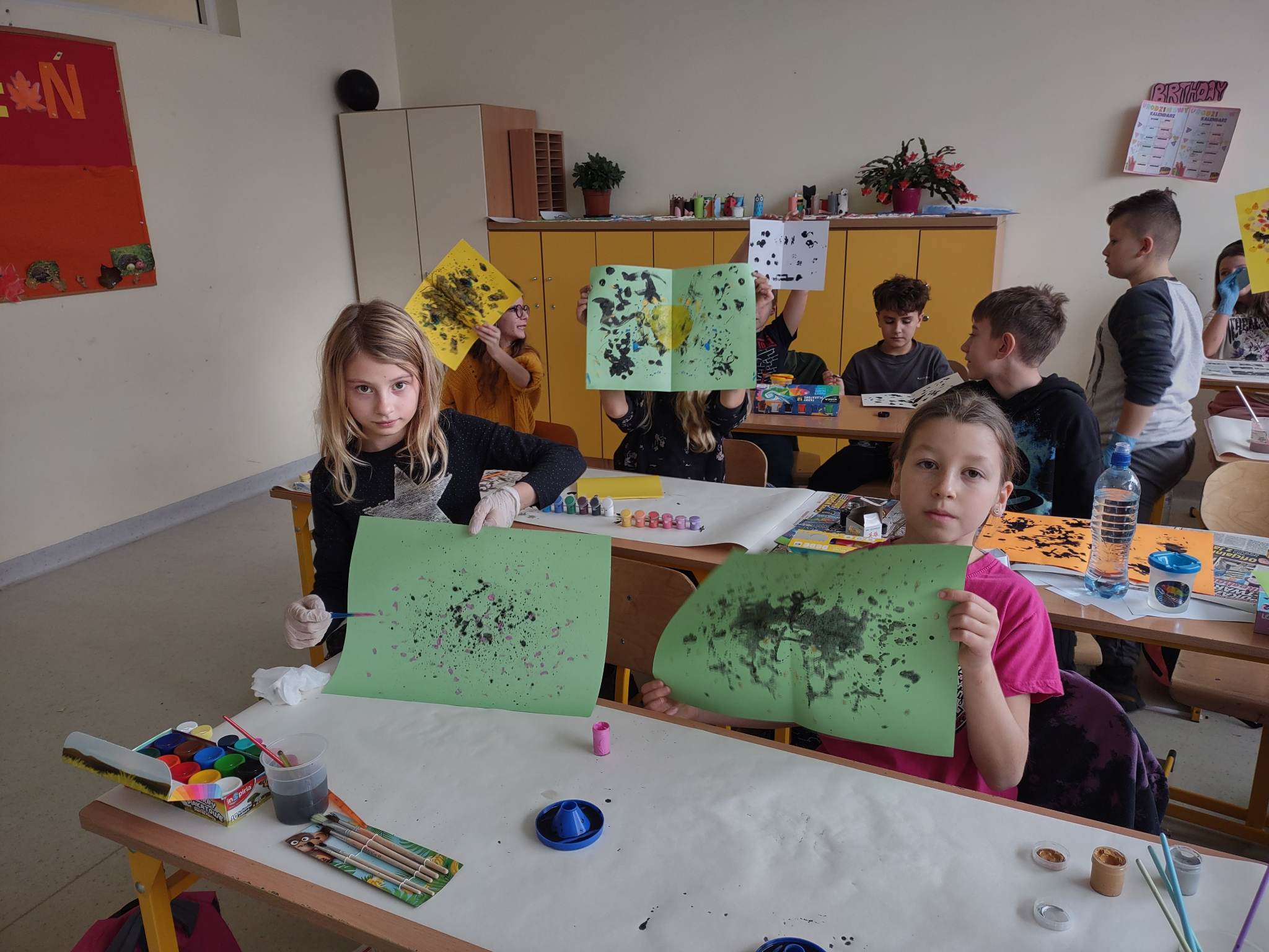 Kto powiedział, że lekcję kleksografii może przeprowadzić tylko Ambroży Kleks w swojej akademii? Oto prace uczniów klas 4 a i 4 b, którzy podczas lekcji języka polskiego uwolnili swoją kreatywność, tworząc kleksy i krótkie rymowanki.