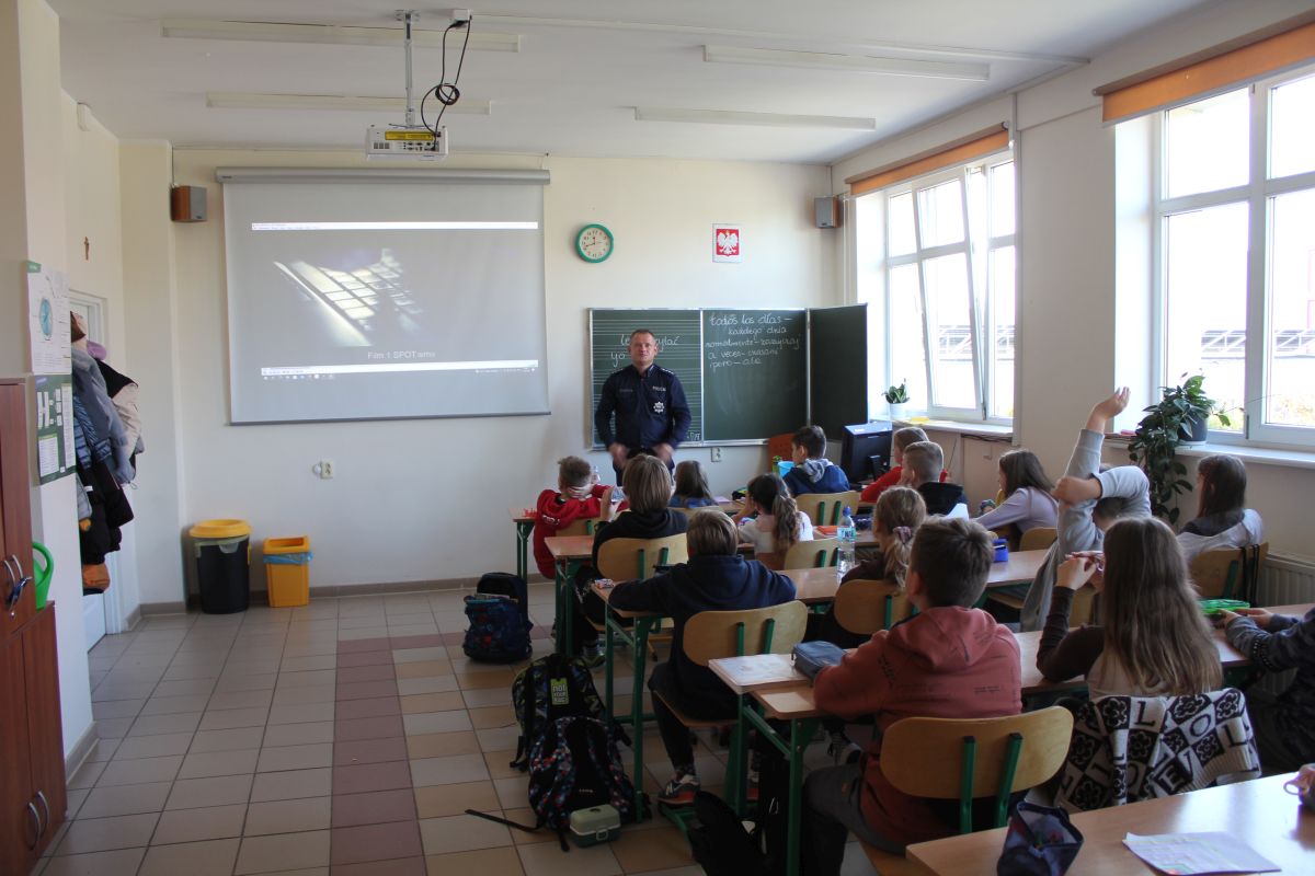 Bezpieczne korzystanie z Internetu. Spotkanie z aspirantem sztabowym Krzysztofem Sochą z Komendy Powiatowej Policji w Gnieźnie.