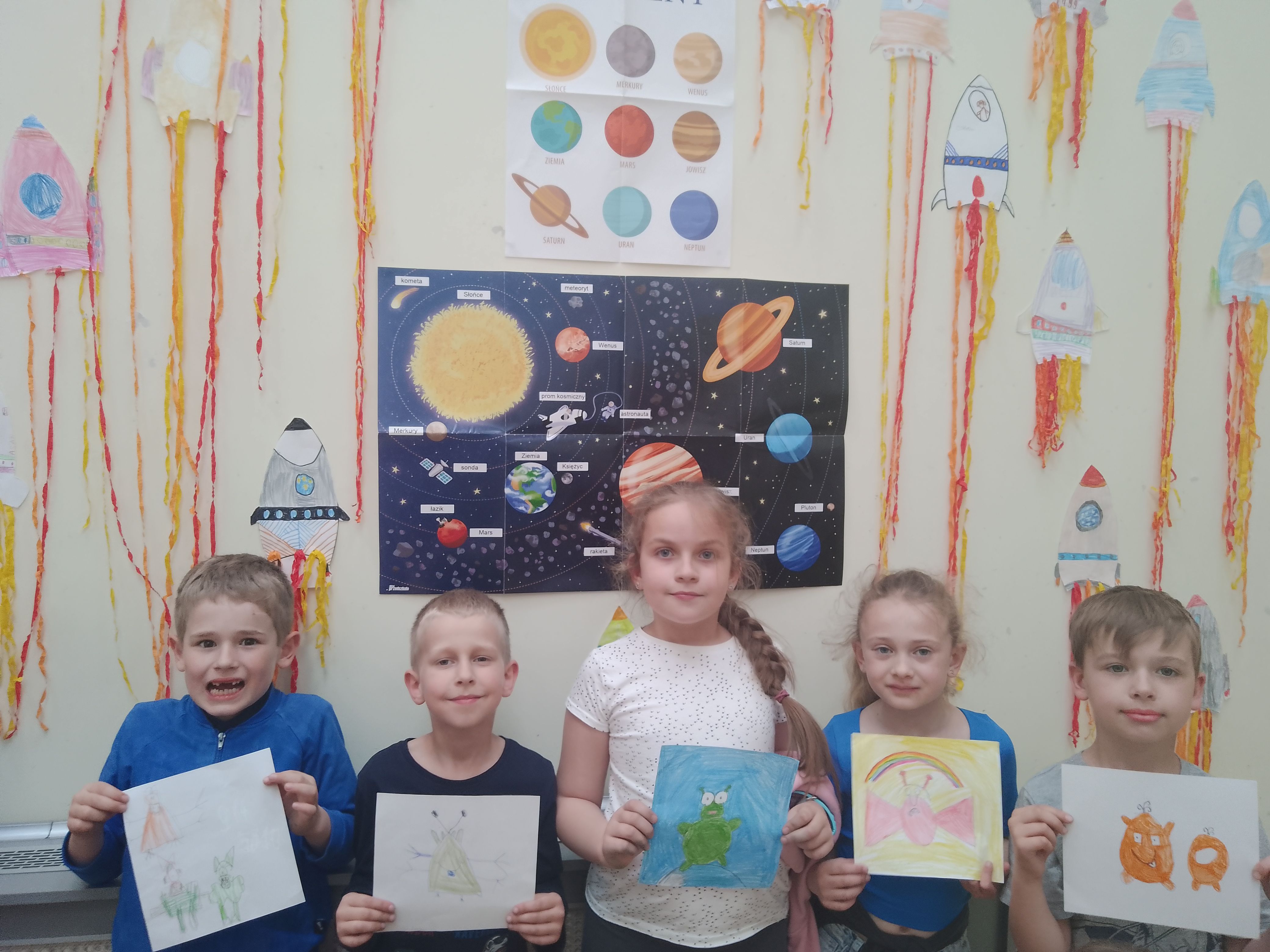 Uczniowie w świetlicy szkolnej numer 1 uczestniczyli w zajęciach pt. " Kosmos". Podczas tych zajęć dzieci: poznały planety i ich cechy charakterystyczne, wykonywali plakat z kosmonautą, przygotowywali rakiety kosmiczne oraz ufoludki.