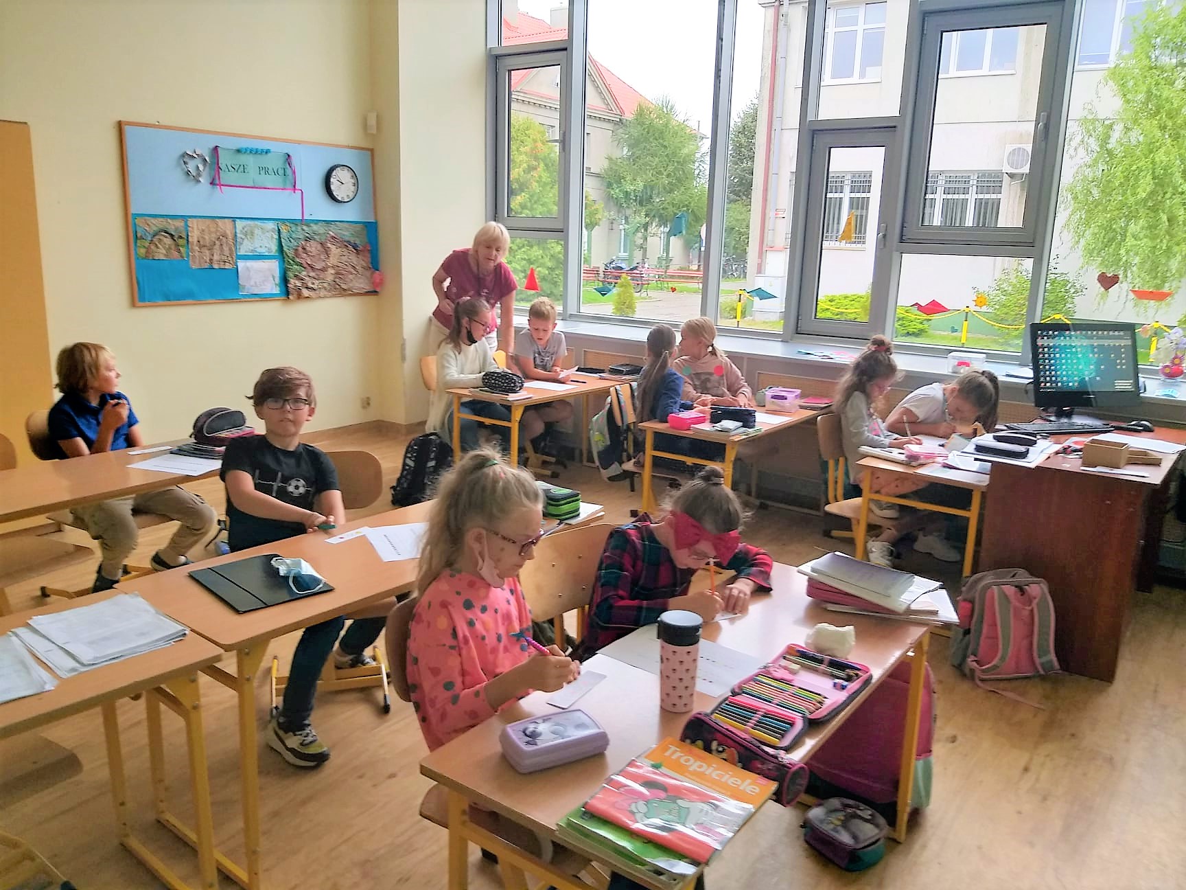 Uczniowie klas pierwszych wraz z wychowawcami odwiedzili bibliotekę szkolną. Dla niektórych była to pierwsza wizyta w tym tajemniczym miejscu. Krótka opowieść „O niezwykłym chłopcu, który pożerał książki” była pretekstem do pogadanki na temat jak należy zachować się w bibliotece i w jaki sposób należy dbać o książki.