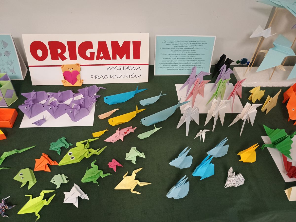 Origami to sztuka składania papieru, z którą mierzyli się uczniowie naszej szkoły. Na lekcjach techniki i plastyki tworzyli przeróżne figury. Z kwadratowej kartki papieru powstały zwierzęta, takie jak: konie, nosorożce, słonie, myszki, lisy i inne, także kwiaty, pudełka i ozdobne pojemniki na drobiazgi.